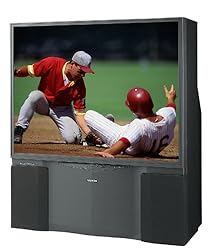 This widescreen 50-inch powerhouse packs everything from generous AV inputs to Toshiba's latest high-tech video innovations (including two-tuner, multiwindow picture-in-picture). The quality starts with a wideband video amplifier, works its way through the set's extensive lens system (including PowerFocus Plus CRTs and a five-element lens with Multilinear Digital Convergence and Multilinear Digital Focus), and manifests itself onscreen through a three-line digital comb filter with vertical contour correction, velocity scan modulation, and 900 lines of horizontal resolution. Can you say "HDTV ready"?